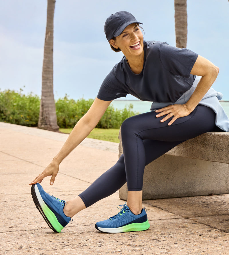 "Love my blue Coral Stretch Knit sneakers. Fit is great, so supportive, no foot pain. Can wear them all day with confidence that my feet are in great care."